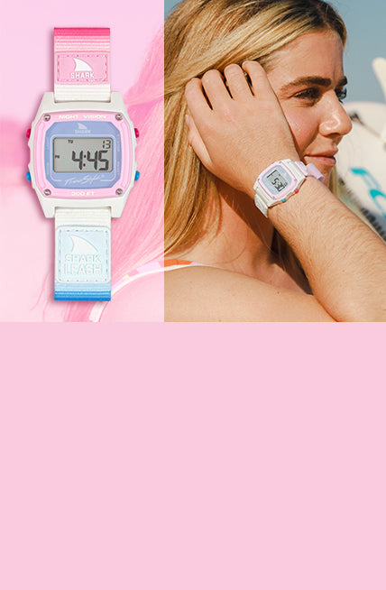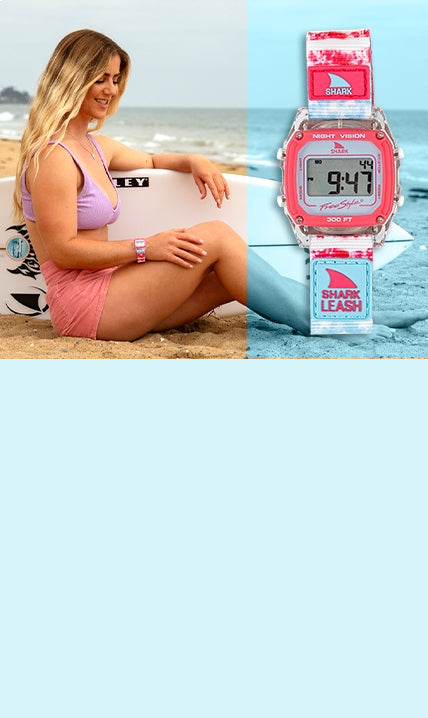 Buckle up because Freestyle and surfing legend Caroline Marks, the reigning WSL Women’s World Tour Champion, are dropping a limited-edition Shark Watch - aptly named Surfin’ USA. This isn’t your average timepiece accessory, it’s a full-on celebration of American pride and a true champion!