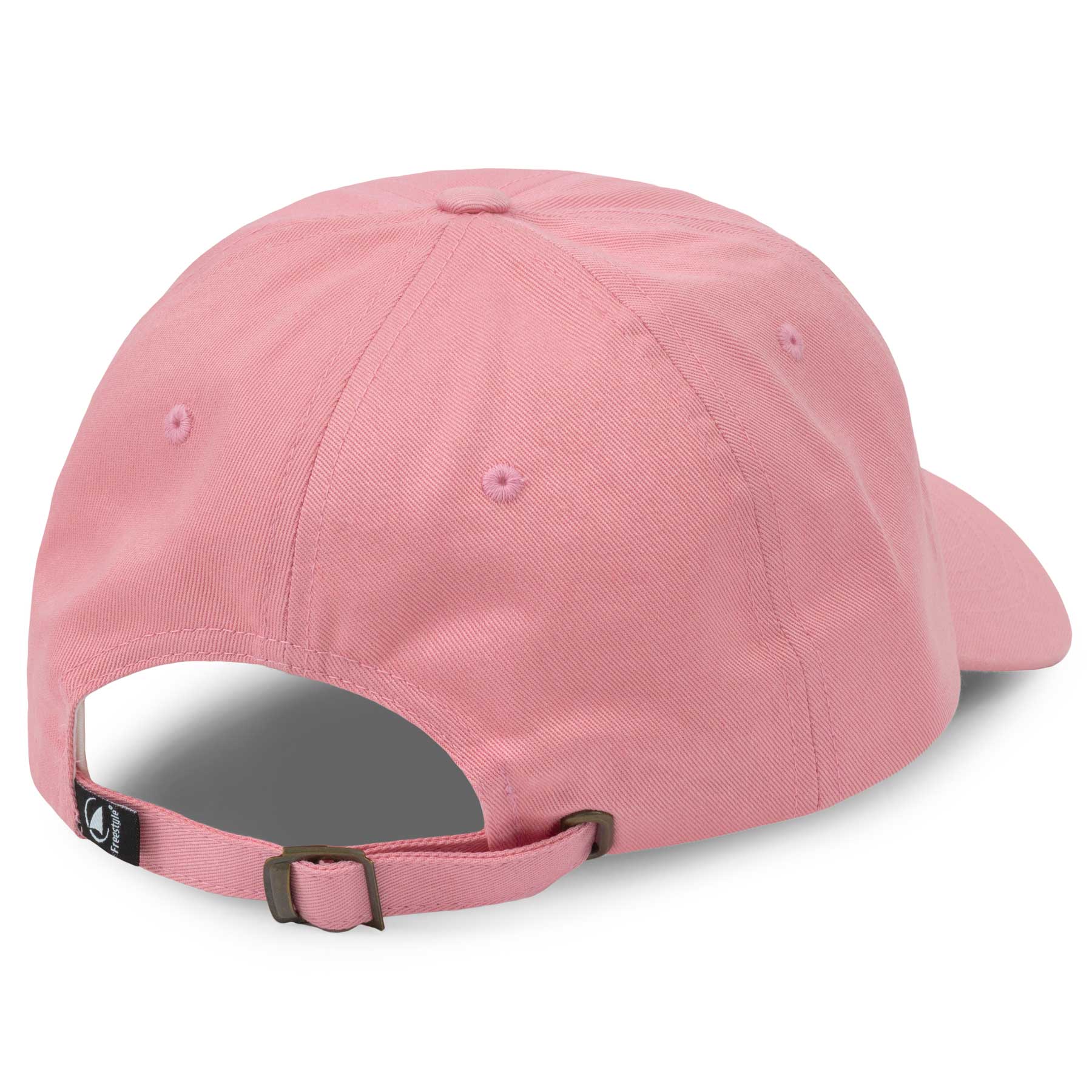 Back view of the Freestyle Dad Cap Signature Cotton Unstructured in pink, showing the pastel pink cotton fabric with an adjustable metal buckle strap and woven Freestyle tag.