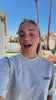 Freestyle LUKE DAVIS SHARK CLASSIC CLIP WHITE WAVE: blue/white strap, palm tree design, SHARK branding on watch face.