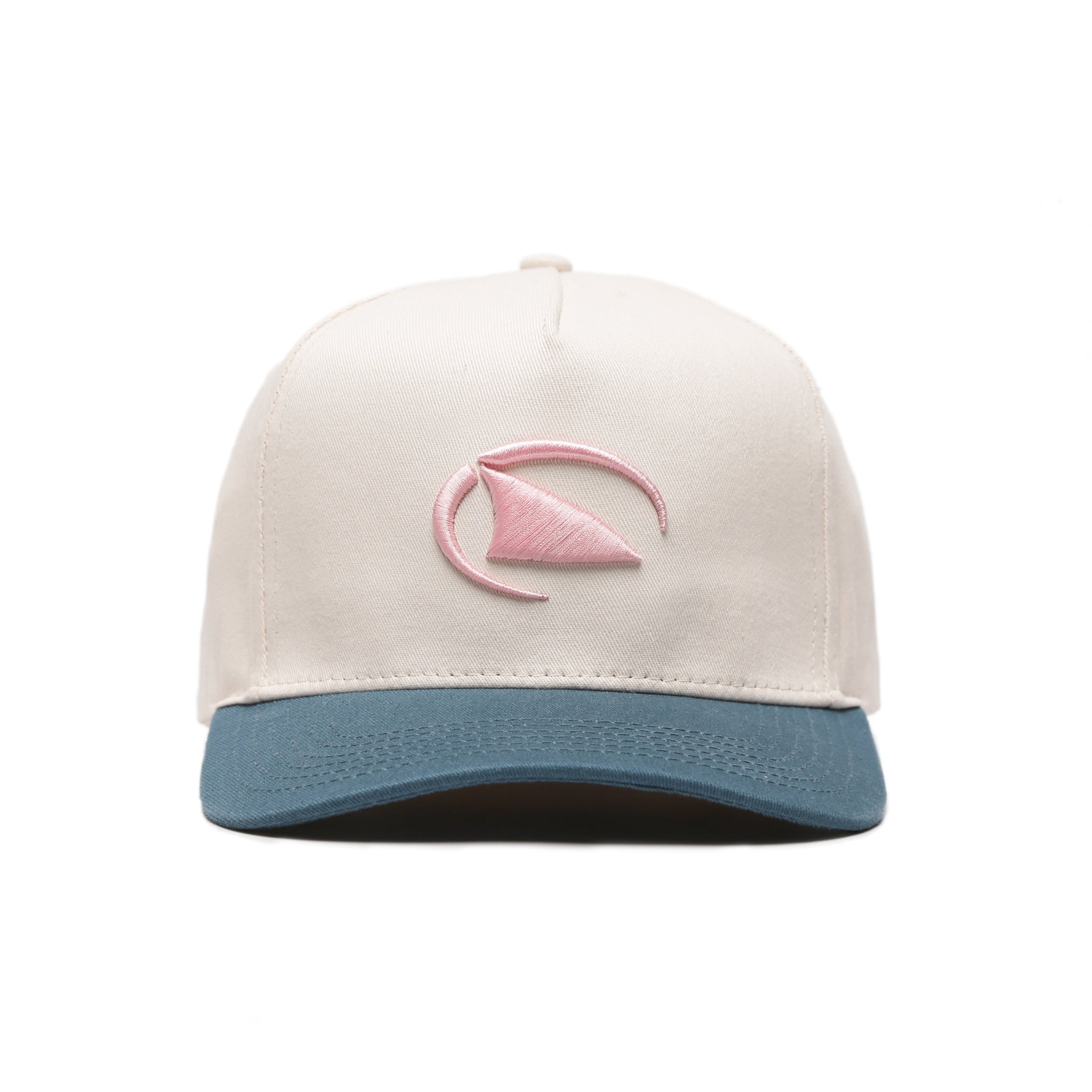 The Shark Fin Twill Snapback in Tradewind pairs a clean cream crown with a surf-inspired teal bill and soft pink iconic Freestyle Fin embroidery across the front. Part of the Freestyle Shaka Hat Series, this hat features a mid-profile fit, sturdy buckram structure, and breathable cotton twill build make it a solid everyday option - from early lineup checks to weekend missions. With UPF 50+ protection and a slightly curved brim, it’s made for long stretches outside doing what you love.