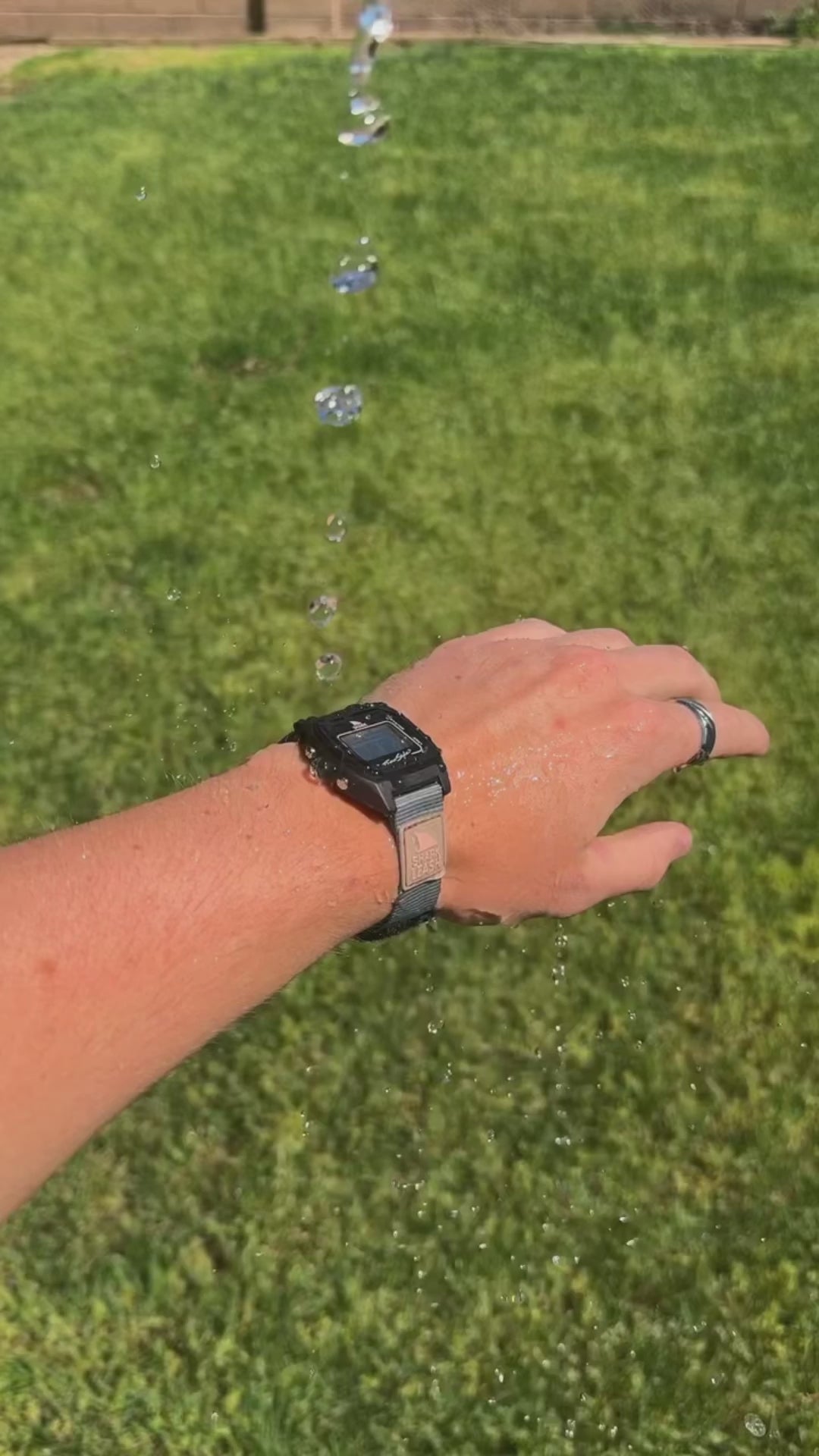 All Freestyle nylon and polyester watchbands are made from the highest quality material. They are washable in warm water with a mild liquid soap. Please be aware of the water resistance for your model prior to washing. If the water resistance is less than 5 ATM H20 it is recommended to remove the band prior to washing. For stubborn stains, scrub with a washcloth and rinse thoroughly.
