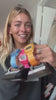 Freestyle SHARK CLASSIC CLIP POPSICLE watch with a pink, yellow, and blue band displays numbers on the screen.